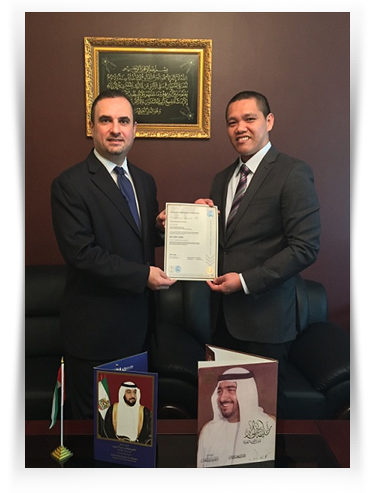 Mr.Muntaser Naser a Managing Director of YAS Oilfield Services receives the Certificate for ISO 9001:2008 last February 23,2015 (Abu Dhabi, UAE) from Mr. Francis Tayhopon (QMS/IMS Consultant).