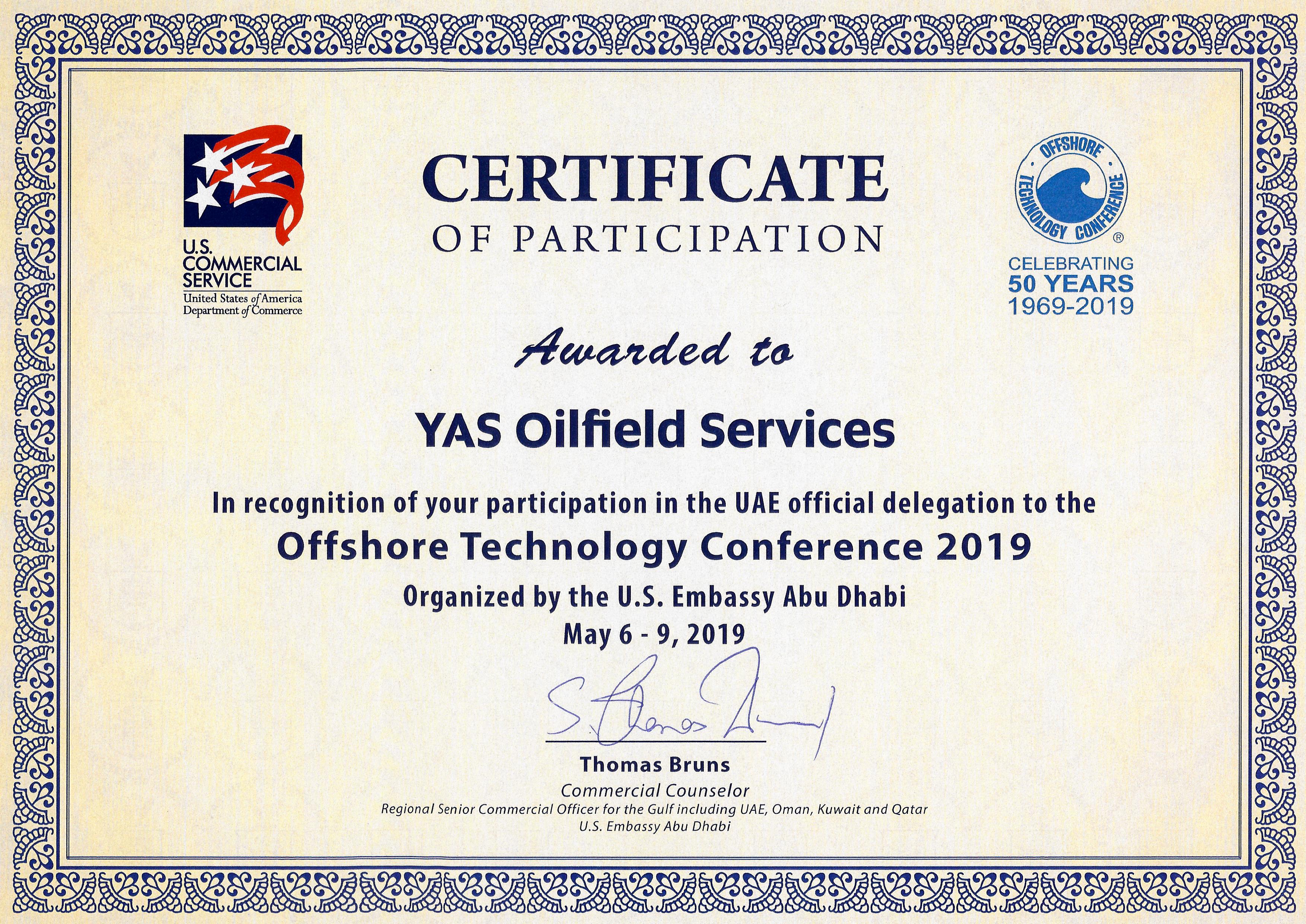 YAS Oilfield Services participated in the UAE Official Delegation to the Offshore Technology Conference 2019 as organized by the US Embassy in Abu Dhabi